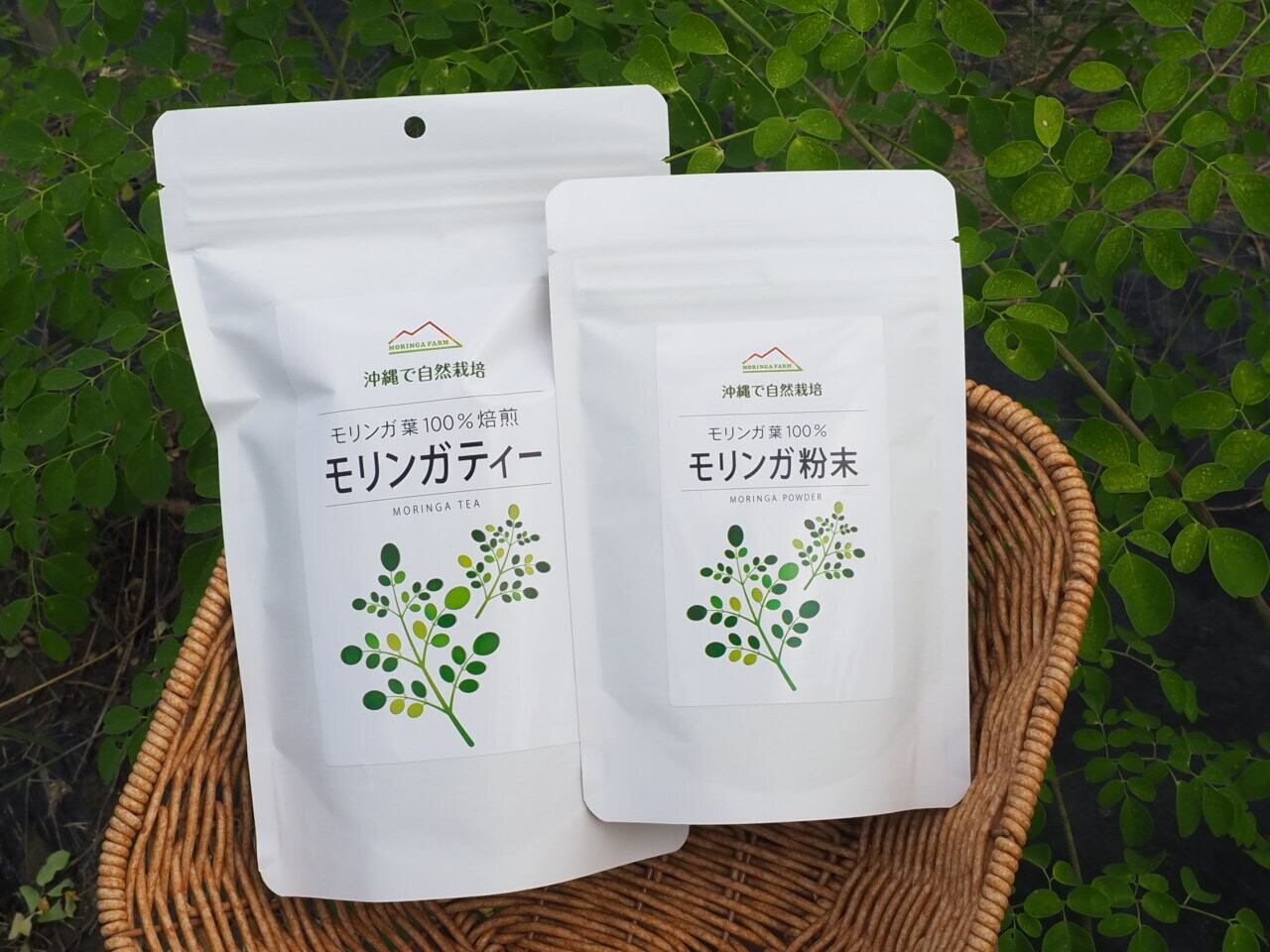 沖縄県南風原町にて、農薬を使わず露地栽培で過酷な環境で栽培した、モリンガ葉100%使用の粉末とお茶のセットになります。